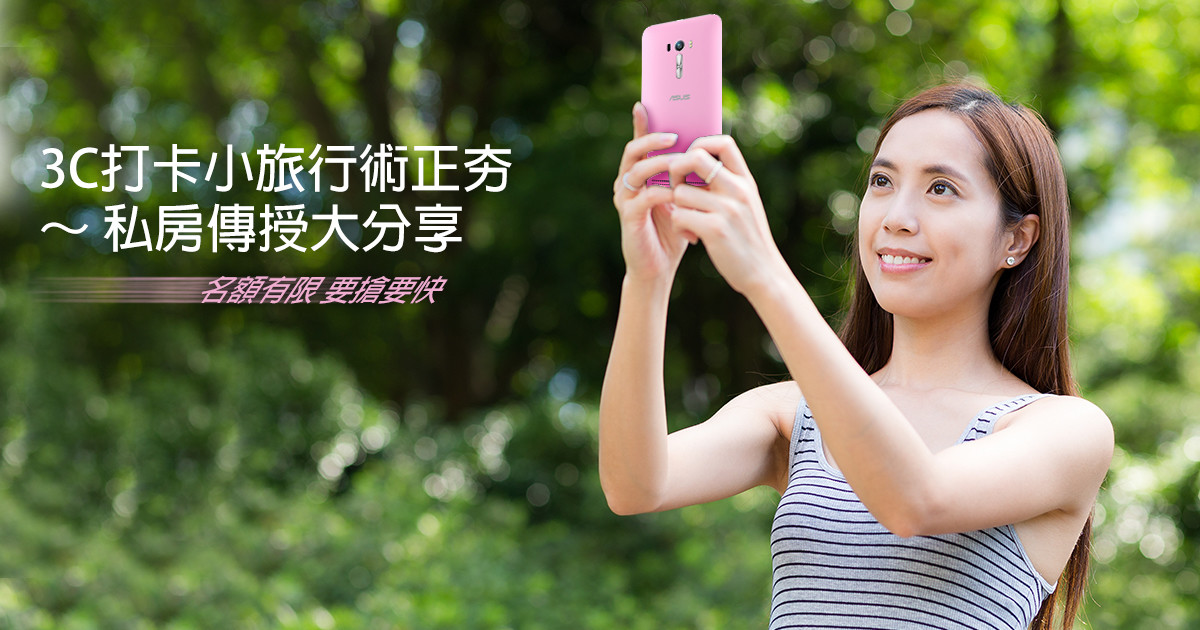 1、『台灣。輕。旅行!3C 旅遊打卡GO!』為免費活動,提供給予:對此主題有興趣之用戶,與已購買華碩各系列筆記型電腦、ZenFone手機、ZenPad平板產品的用戶參與。課程期間,請已購買的用戶需攜帶自己的華碩手機或平板產品前往活動。